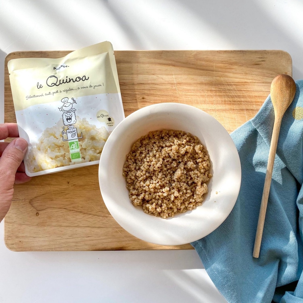 Quinoa Popote có thể trộn vô cùng tận với các loại bột : cà rốt , củ cải , cà chua , thịt bê hoặc giăm bông ... Bữa ăn của bé đã sẵn sàng chỉ sau 3 phút.