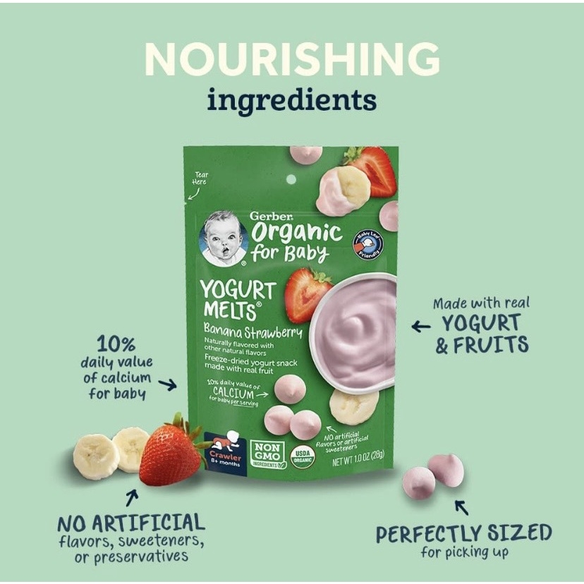 Sữa chua trái cây sấy khô Gerber Organic cho bé từ 8 tháng tuổi