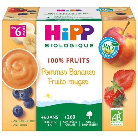 Trái cây nghiền hữu cơ Hipp cho bé từ 6 tháng tuổi.