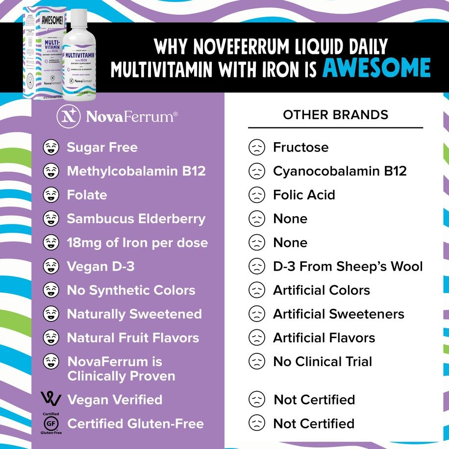 Vitamin tổng hợp Novaferrum bổ sung thêm sắt và cơm cháy Liquid Daily NovaFerrum Multivitamin with Iron (with Sambucus Elderberry) (32 FL OZ)